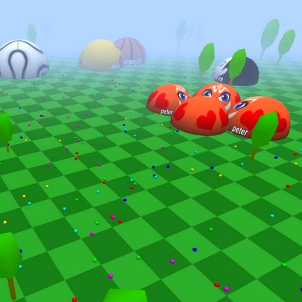 In case you have never played the original, the gameplay is essentially a free for all battle for survival in a giant arena. You are a round blob sliding around trying to consume as much energy (small coloured spheres) as you can. Other blobs try to do the same and when two of them collide, the bigger one consumes the smaller one. There is also an option to split your blob in two quickly sending one of the parts a bit further away at a higher speed.