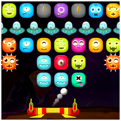 This game is a traditional take on the breakout genre and has a variety of alien block kinds as well as special blocks over its 24 hard levels.