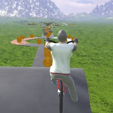 Control the bike by pressing W, A, S, and D buttons on your keyboard. Lean left and right with Q and E to keep your balance. If you get stuck, press R to jump and get out of any predicament. The goal is to collect a number of coins scattered throughout the course. That number is different every time and increases with every new stage you unlock. All the tracks are suspended in the air high above the ground. If you fall, you die. And the level restarts from the beginning.
